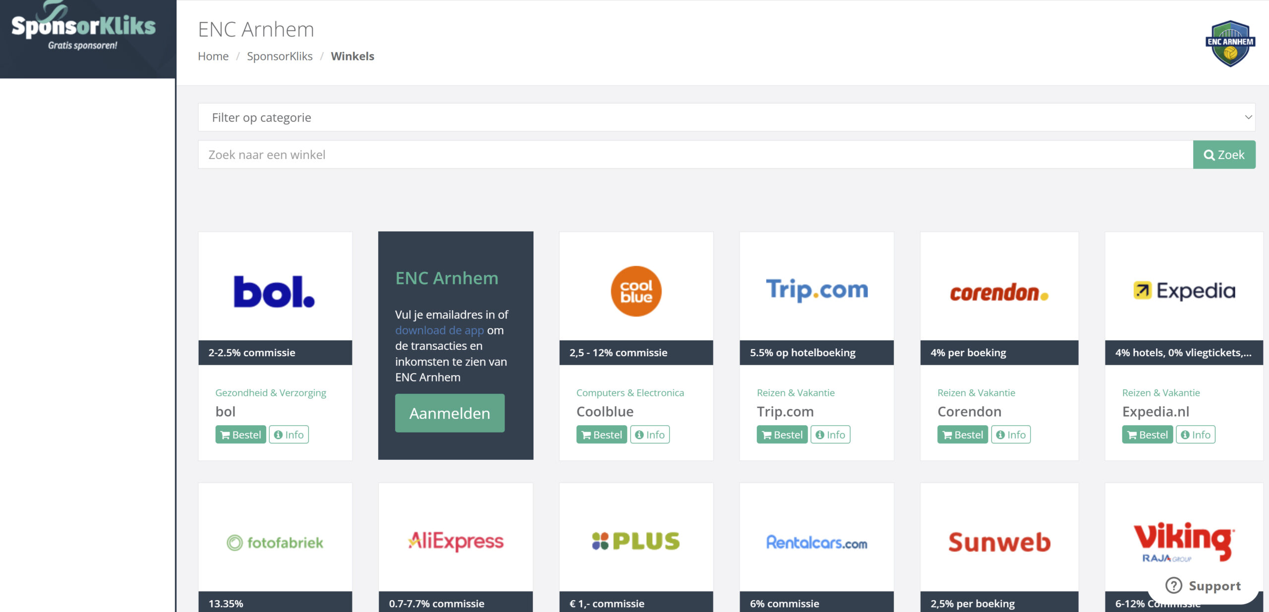 Door te kopen via SponsorKliks bij de aangesloten organisaties betaal je zelf niets extra. Je helpt ENC-Arnhem omdat wij een klein percentage ontvangen.